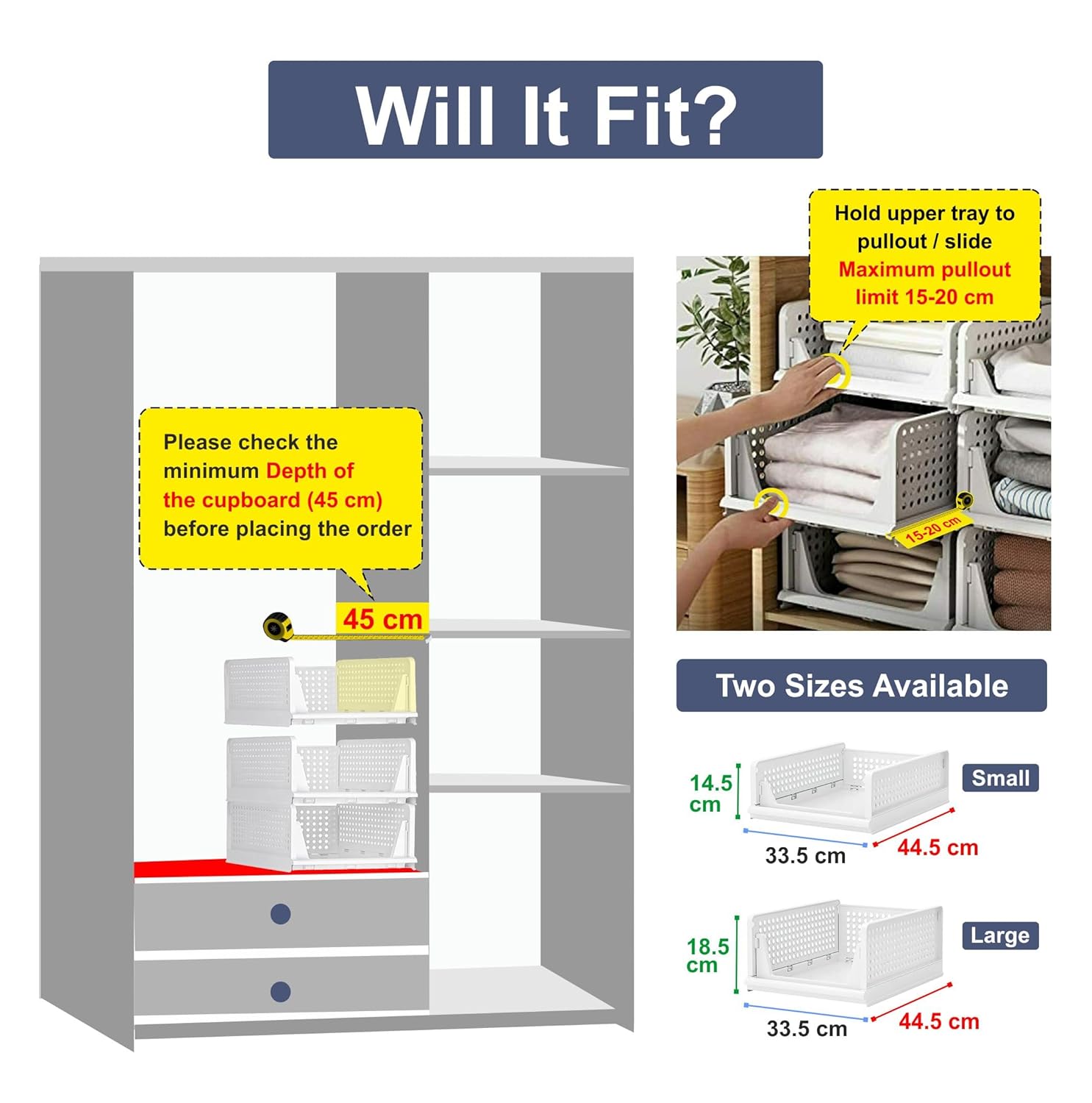 ADITYA POLYMERS Pack of 3 Pcs.(Large) Wardrobe Closet Organizer for Clothes| Foldable Stackable Multi purpose storage Organizers|Cupboard Almirah Space Organiser| Adjustable Sliding Drawer like Basket