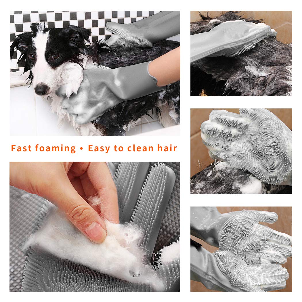 🐶 Premium Material – Dimension 13.8in * 5.9in. The magic gloves are made entirely of eco-friendly silicone, which is with superior elastic and soft property, no easy to tear.