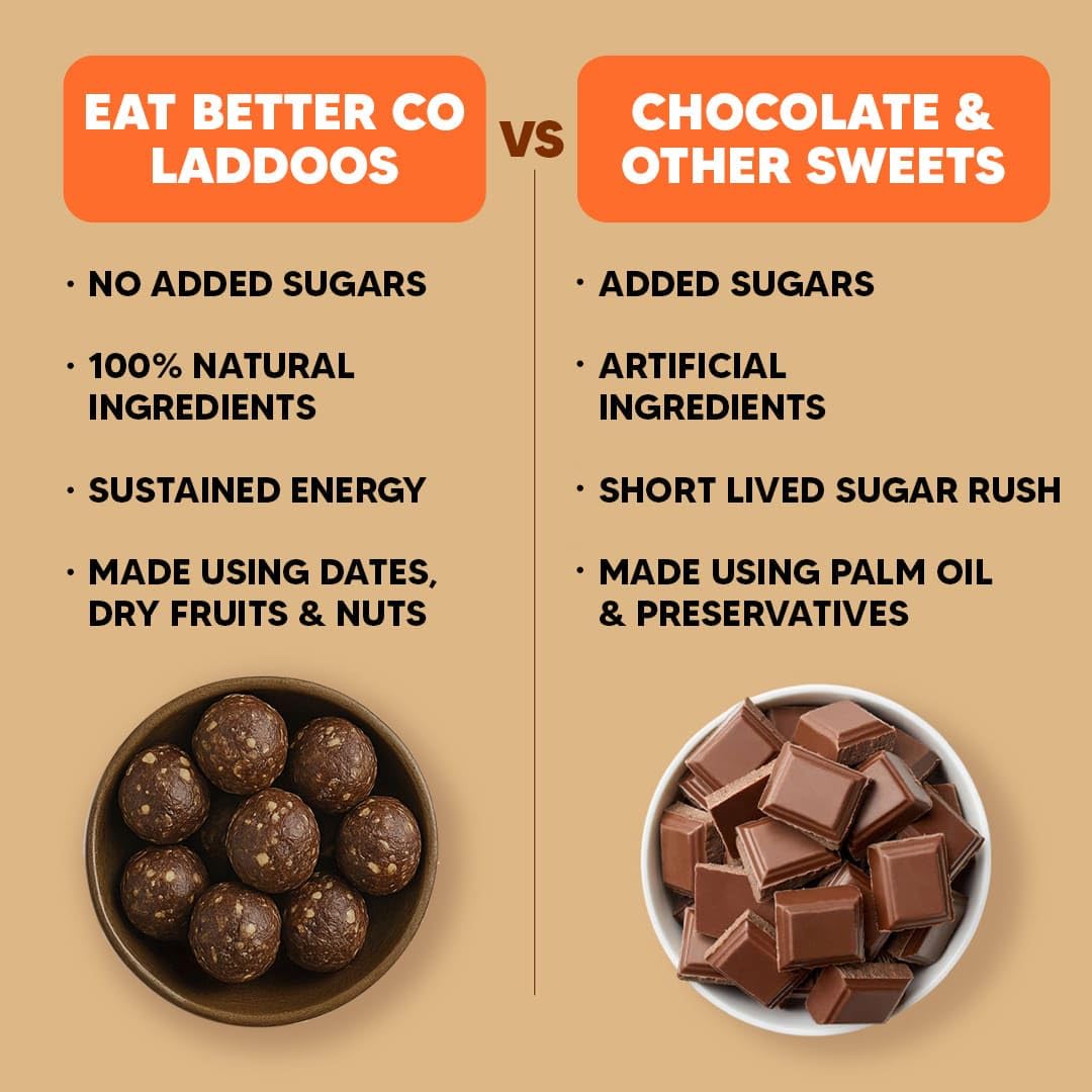 EAT BETTER CO – Hazelnut & Chocolate – Dates & Dry-Fruits Laddoos – Pack of 20 | No Added Sugar, High Protein & Instant Energy | Healthy Chocolate | Healthy Snacks | Energy-Bar Replacement