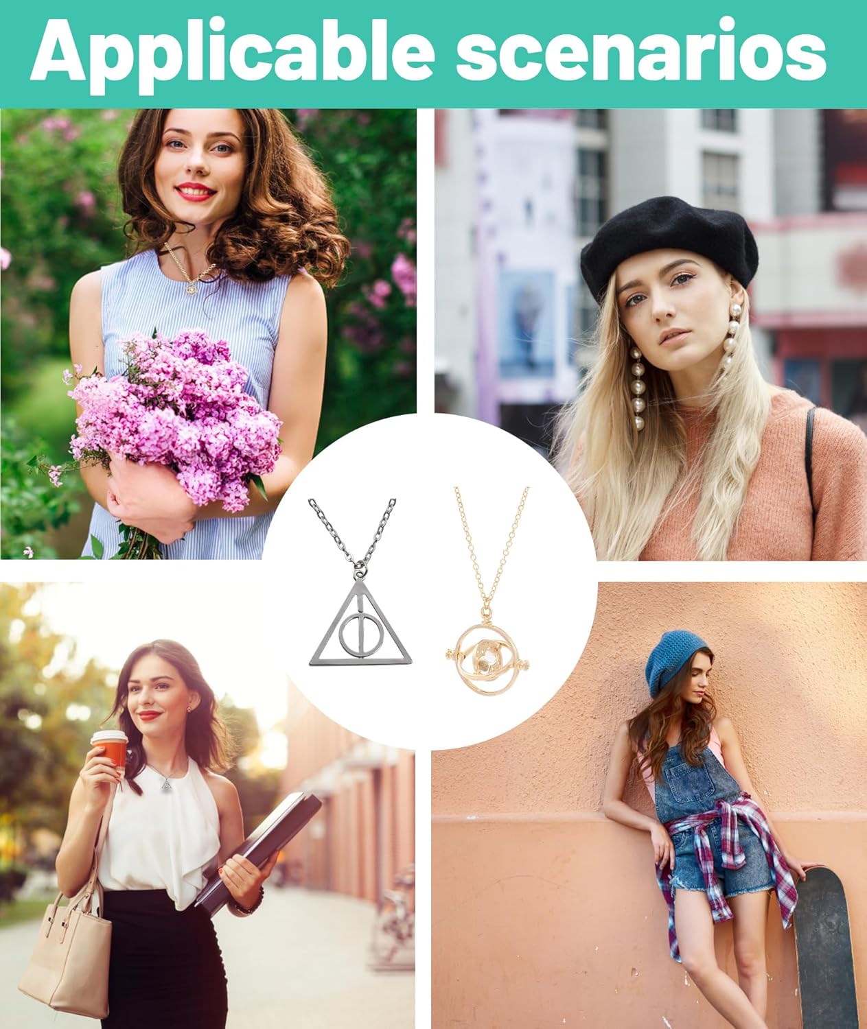 RupeeRise 2-Piece Necklace Set,Time Turner Pendant and Chain,Inspired Jewelry,Unisex Accessories for Cosplay